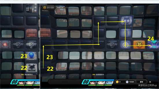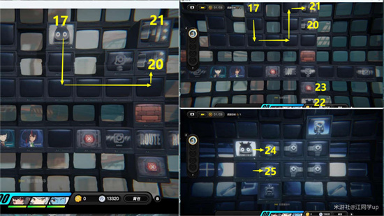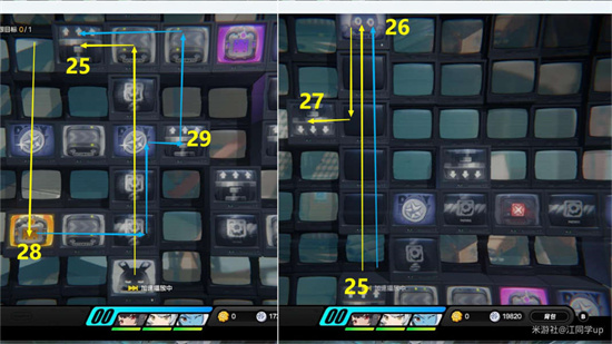 8.接着去20区域会将我们弹回到17区域,接着去21区域会将我们弹到下面22区域,接着去23区域接通电路,只需将24区域撞1下,25区域撞2下,即可完成23区域接通电路