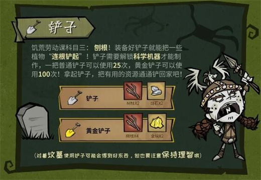 铲子需要解锁科学机器才能制作,一把普通铲子可以使用25次,黄金铲子可以使用100次!