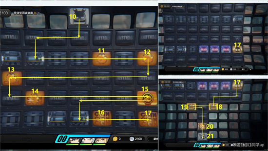 5、接着按照下图路线,依次去11-19区域,然后去20区域打开门后去21区域,打完21区域boss后,该【剧情委托】结束
