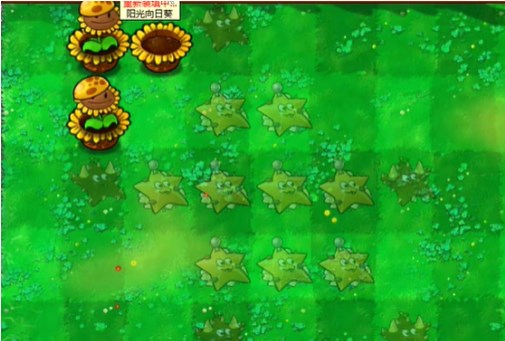5、继续在左侧补充向日葵花盆和阳光向日葵,在中间补充多个地雷杨桃即可过关。