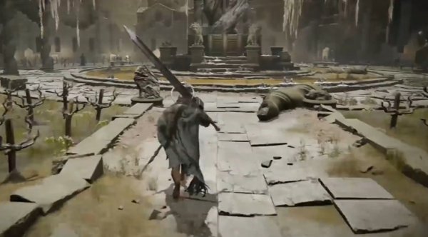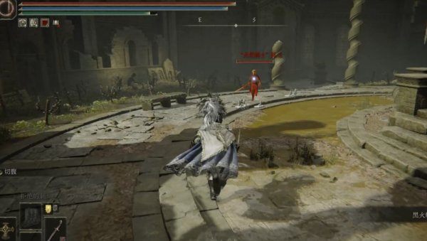 3、在尽头处的喷泉区域能够第一次遇到火焰骑士昆兰的入侵,直接击败他。
