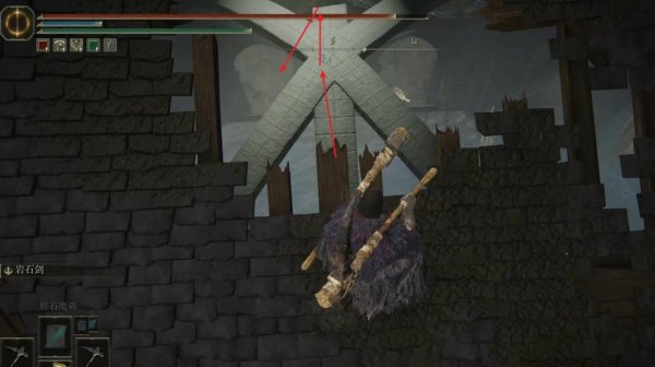 11、在目标房顶继续跳到前方的梁上继续往上走到房顶。