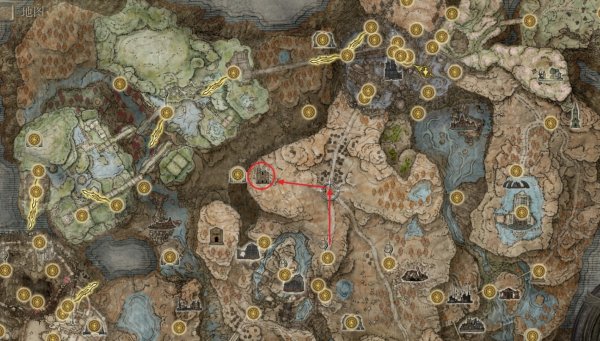 4、然后传送到赐福【大道旁的十字记号】,沿着下图路线前往圣战教堂处。