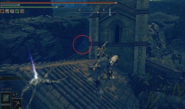 10、在教区开始跳房子,先沿着下图所示路线跳到前方左侧的房顶上。