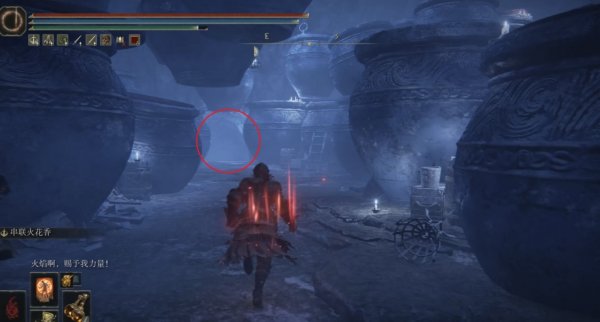 8、一直走到前方尽头可以看到一个跳跳乐用的壶,从这个壶开始往左跳到底层,继续往前走就能看到BOSS的雾门。