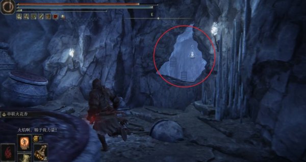 4、往房间右边的缺口继续前进,穿过一片房间进入下层的悬崖边缘,沿路往左走到一个环形大洞的区域。