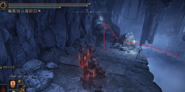 2、从监牢的赐福往前走到悬崖边,此时向左走到尽头。