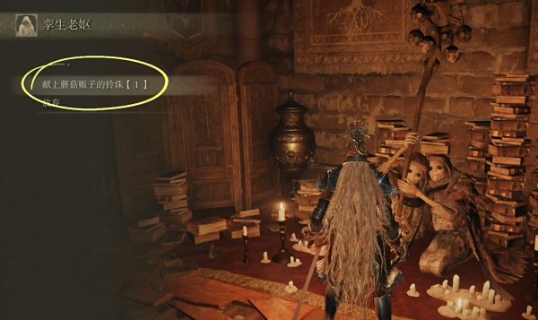 3、传送到「艾尔登法环(本体)」“大赐福”去找“孪生老妪”献上“蘑菇贩子的铃珠1”