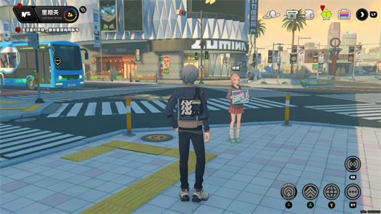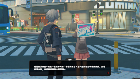 1.在白天先来到【光映广场-喵吉警官】,转身面对马路就可以看到一个粉头发、举着牌子的npc。