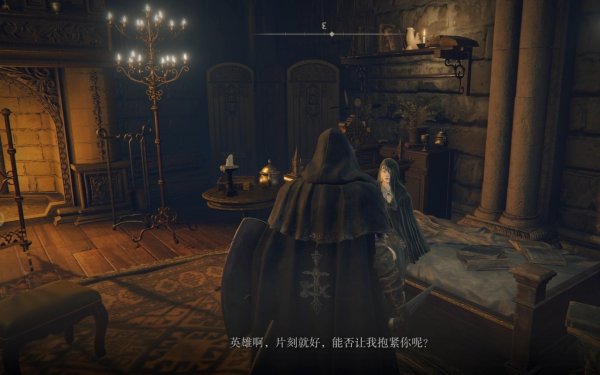 2、在圆桌厅堂最右侧的房间中可以找到该NPC,与其交谈后她会提出拥抱我们的请求。