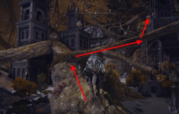 11、之后我们需要完成菈妮的任务,从利用倒转的雕像从卡利亚书斋中获得【死亡咒痕】,具体流程可以参考此文章(点击此处跳转),随后通过永恒之城来到祖灵森林北部,下图所示位置。