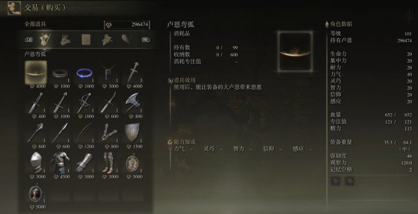 2、在该NPC处可以花费卢恩购买道具,后续获得的铃珠可以交给该NPC来打开对应NPC的商店。