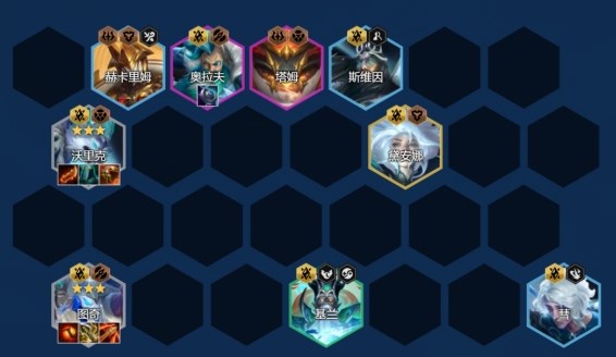 阵容后期7冰霜上限其实不算高,有双冰霜转可考虑9冰霜,大成不虚任何九五阵容。其他情况下也可3/5冰霜+2重装+2猎手去拼九五。