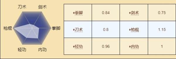 此人来自杨家枪魂世家,擅使枪法,枪术威力提升5%,无视对手4%的防御,且使用枪棍攻击对手时有40%几率为自身赋予「枪魂」效果。