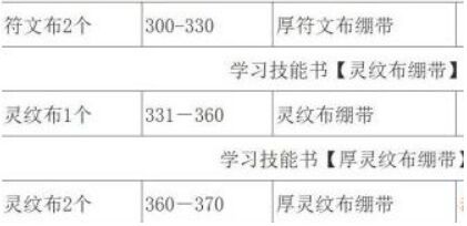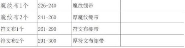 375级之前:亚麻布160个、毛料170个、丝绸240个、魔纹布100个、符文布170个、灵纹布60个。