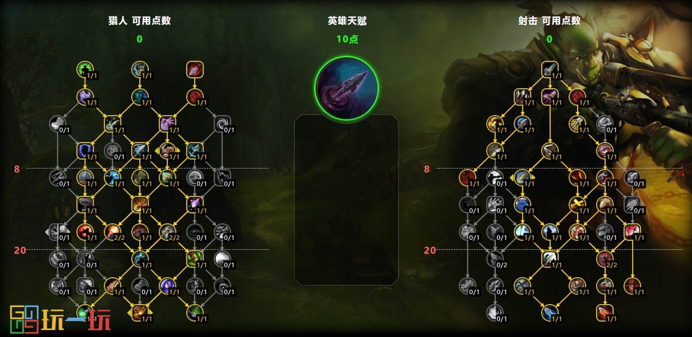 11.0前夕版本的射击猎天赋如下图所示