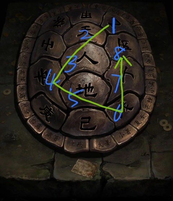 根据绿王八的裂纹顺序点,获得路引,结束