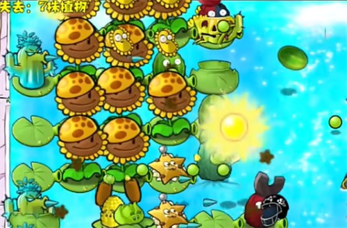 4、在上方继续补充向日葵,在外侧种植一个海兵菇。
