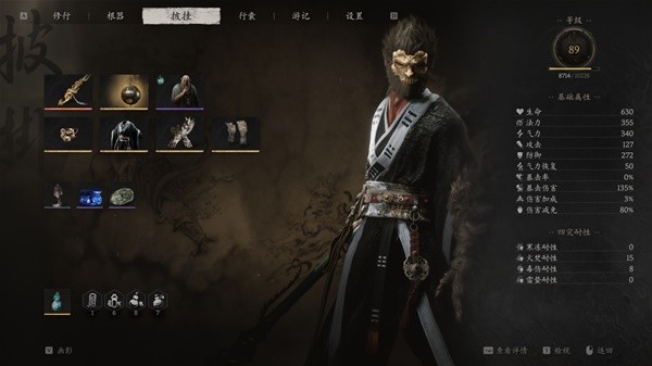 阴阳法衣 + 八戒不净套:这是减伤流的核心装备组合。阴阳法衣在角色血量超过半血时,提供20%的被动减伤效果;而八戒不净套在化身后,则能额外增加20%的减伤,持续约15秒。配合上元气消耗较少的技能(如不能、不空),可以迅速叠满元气,实现无限续航。