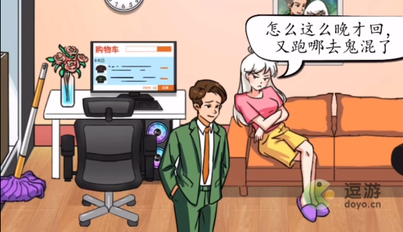 1、汉字找茬王生气的女友,需要想办法让女友消气,首先将地上和桌上的三件衣服拖到脏衣篓。