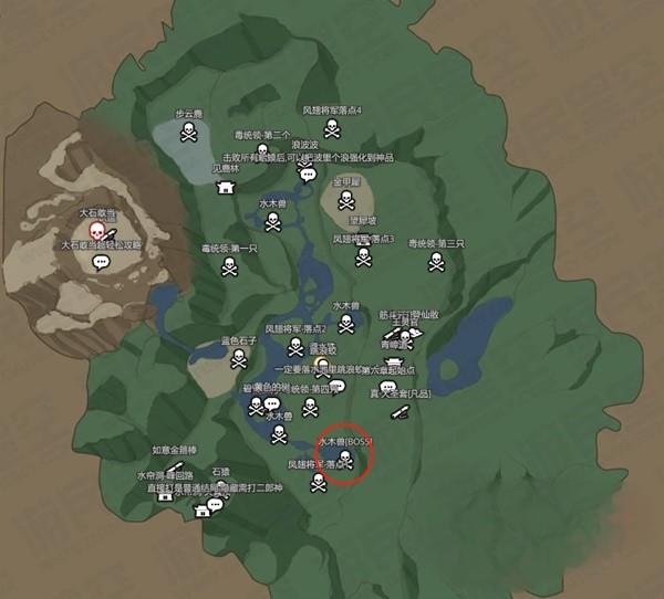 水木兽分为BOSS血条与精英怪血条两种,虽形态各异,但攻击方式如出一辙,唯有血条厚度有所区分。在互动地图中,可清晰标记出BOSS血条水木兽的具体位置,周围环绕的精英怪则需仔细辨别。