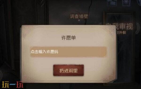 3、在许愿单里填入总换码再点击扔进墙洞即可。