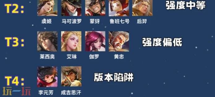 T2梯队:虞姬、马可波罗、鲁班七号、后羿、蒙犽