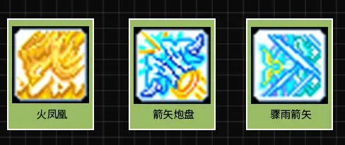 2、后期搭配:慢慢的我们技能越来越多,光按风之矢也太无聊了,直接上操作,先放置火凤凰+箭矢炮盘X2,然后就是骤雨箭矢*1000。