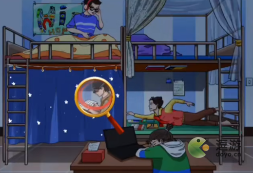 1、文字玩出花宿舍学神,需要找到十二处内卷学习的地方,背对的人后背上是效仿刺字