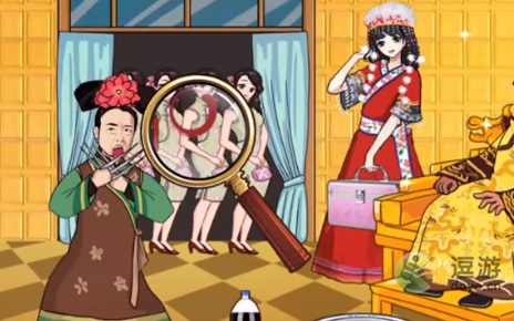1、汉字找茬王足浴奇遇,需要把足浴价格打上去,首先放大镜下点击龙袍、龙椅,桌上是大餐