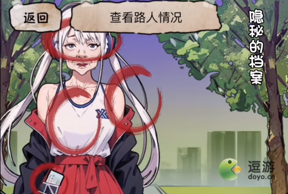 5、离开小区后遇到一个老婆婆,点击耳机、双马尾、奇怪的衣服、粉色指甲,上滑裙子口袋找到身份证
