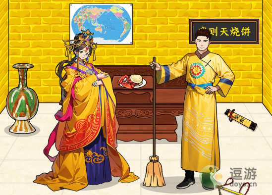 1、文字来找茬武则天烧饼,需要把烧饼店的价格打上去,首先左边的人穿着凤冠龙袍,地上是大理石地板