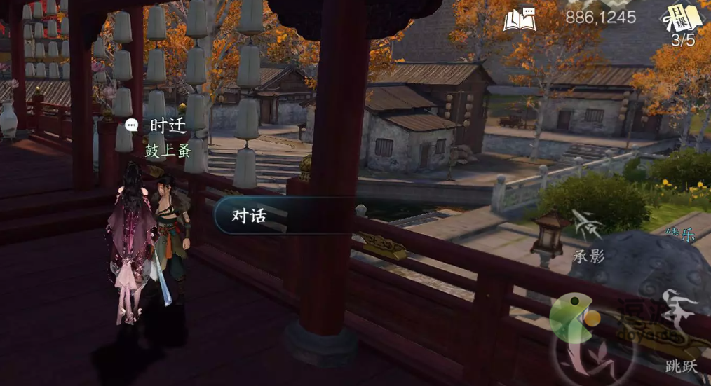 2、根据剧情提示,前往汴京886.1245找到时迁并对话,对话结束后获得道具“钱袋”。