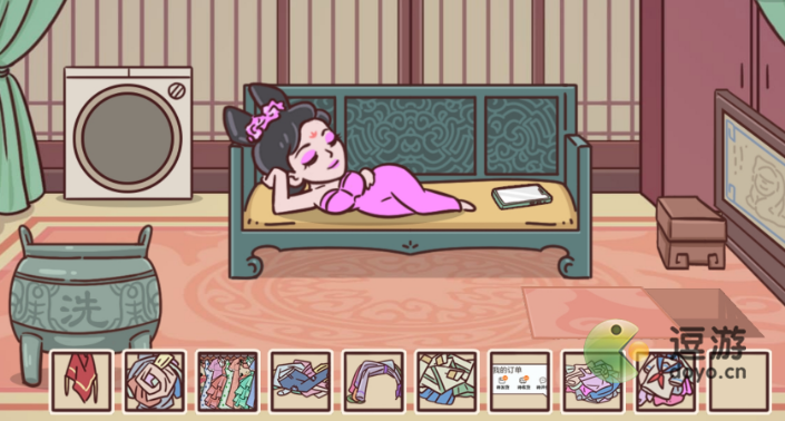 1、三国哈哈哈2貂蝉约会,首先点击屏风上挂的衣服,再点击地上的衣服