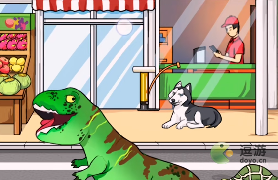 1、疯狂梗传找到10首歌,首先【恐龙扛狼】 拖动哈士奇到恐龙
