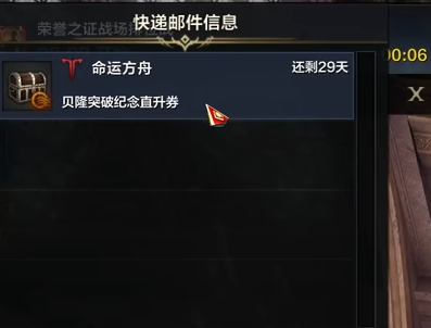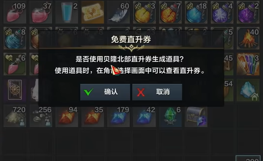 1、首先玩家的大号在达到50级之后,且完成贝隆背部的主线任务后,邮箱就会收到一张直升卷。