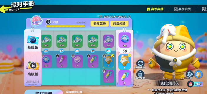 第五种方法就是赛季挑战,打开手册完成赛季挑战升级手册,即可领取对应奖励,也就是潮流纤维或者瓶盖啦!手册奖励共50级。