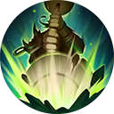 获得可以150+8%最大生命值的护盾,持续3秒造成范围攻击两次,造成120(+4.0%生命值加成)点物理伤害。