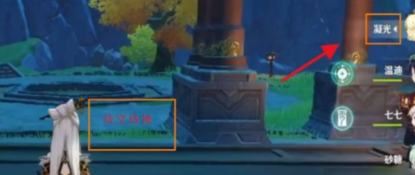 4、接着使用队伍中的“凝光”,按“空格键”。