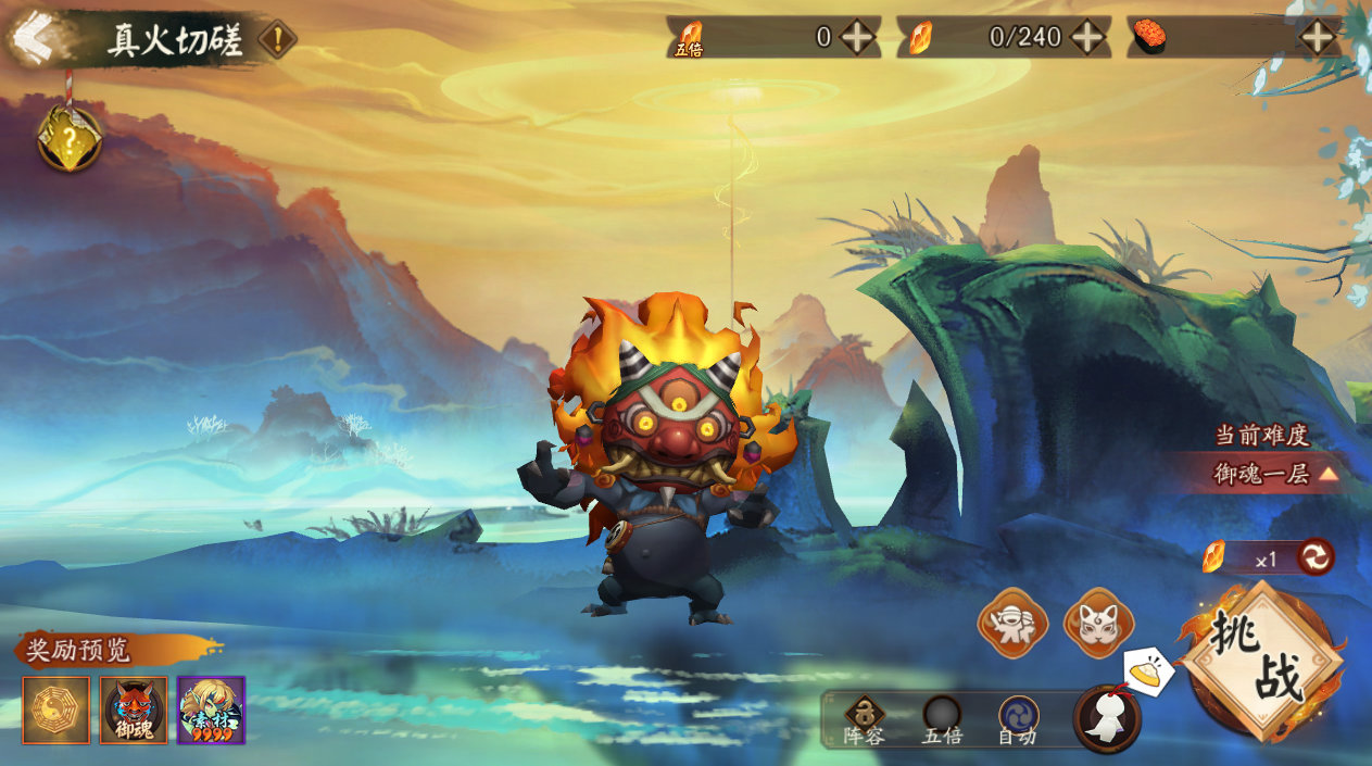 ※真火切磋:试炼共有十层挑战,大人们可消耗「崅炎子」或体力开启挑战,成功挑战将获得「乾坤币」等奖励,通关即可开启下一层挑战。