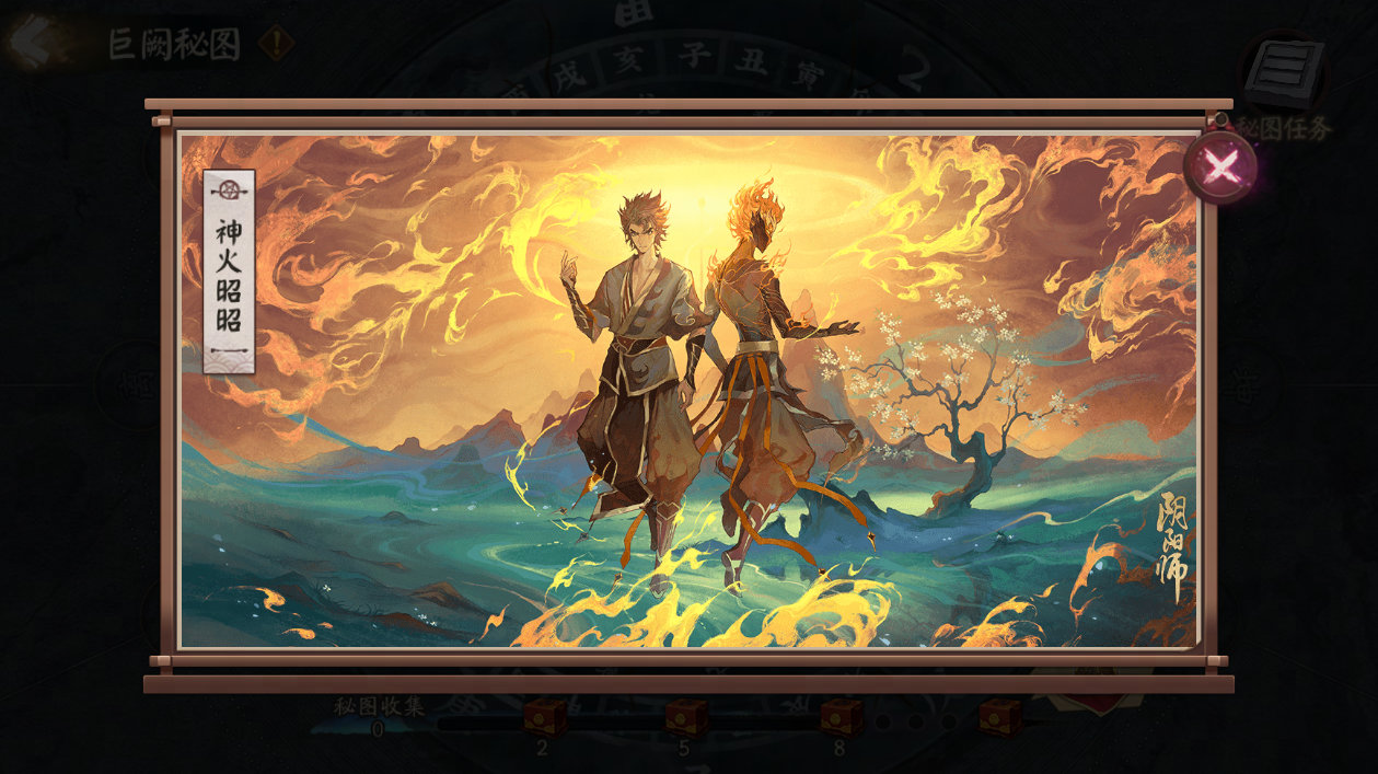 ※巨阙秘图:活动期间,阴阳师大人完成秘图任务后,将激活巨阙秘图上的石板拼图。大人可通过移动已激活的石板,将其复位至正确之处。复原巨阙秘图,可获得插画「神火昭昭」、特殊道具「乾坤要诀」等奖励。