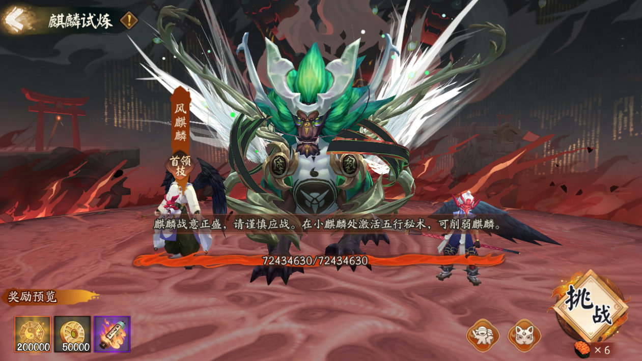 ※麒麟试炼:麒麟为雾山问道之人设下试炼,通关后可获取「乾坤币」、「小纸人·闻人翊悬」与「焰萦墨意礼盒」(内含闻人翊悬专属姿度「墨焰」「水墨清意」「泼色乾坤」)等丰厚奖励。大人可通过激活五行机关,削弱当前关卡麒麟的技能,助力完成试炼。