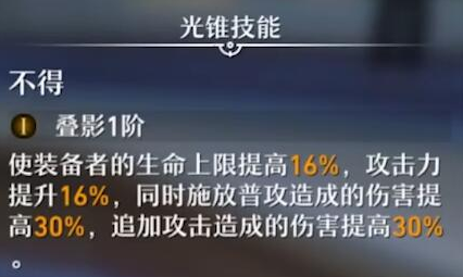 2、在加成数值方面非常乐观,达到满级时单单是生命值上限就提高了32%,攻击力同样数值,释放普攻和反击伤害加成为58%。和其他同类型相比,在效果上更加简单粗暴,没有其他需要思考地方,只要装备上就能带来最直观输出提升。这对于新人玩家来说非常友好,不用再费心思去搭配。