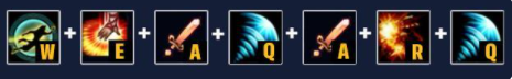 中期小团战尽量先帮队友打前排,可以找机会R敌方前排去击飞更多的敌人开团;也可以留着R去切敌方后排,征服者叠起来之后WRQQA秒杀半血以下的后排,如果符文带的是电击出穿甲装备的话,基本上RQQA就能秒掉满血脆皮。