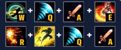 这套连招也是利用W位移拉近距离,然后马上用Q锁定目标,再接AE伤害,然后利用R闪将敌方反向踢回最后再用二段Q跟进斩杀,这套连招的好处是可以让自己回到较为安全的位置。