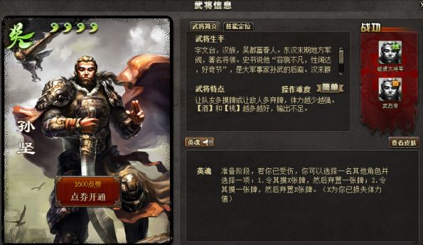 英魂是孙坚的技能,效果是回合开始时,如果受伤就可以让一名其他角色执行下列两项中的一项:摸X张牌,然后弃一张牌;摸一张牌,然后弃X张牌,这里的X为你已损失的体力值,每回合限一次。
