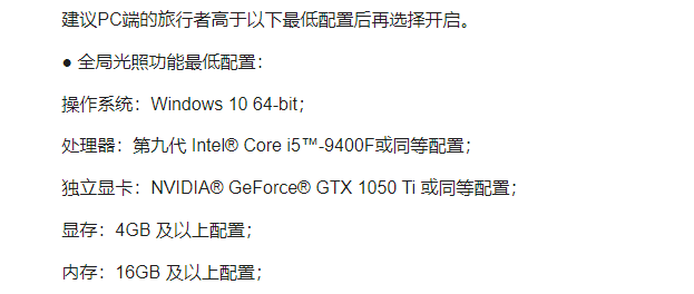 全局光照功能最低配置: