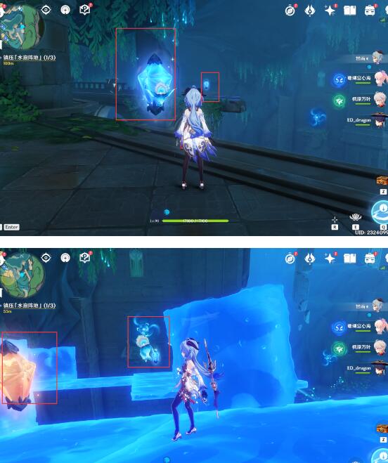 在击打完第二个晶体后会出现凝水墙和第三处晶体