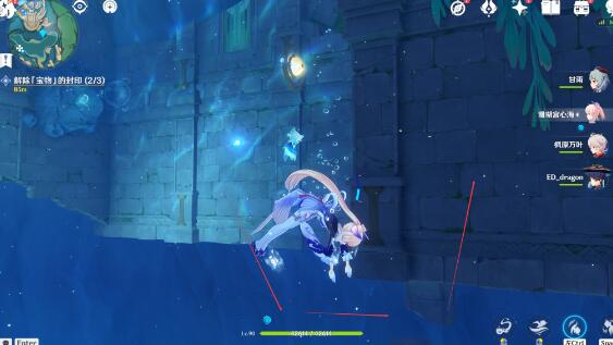 温馨提示:别忘了开旁边的锚点,过会解密即使掉下去也能通过传送快速返回任务地点