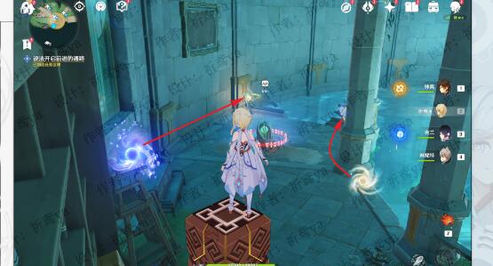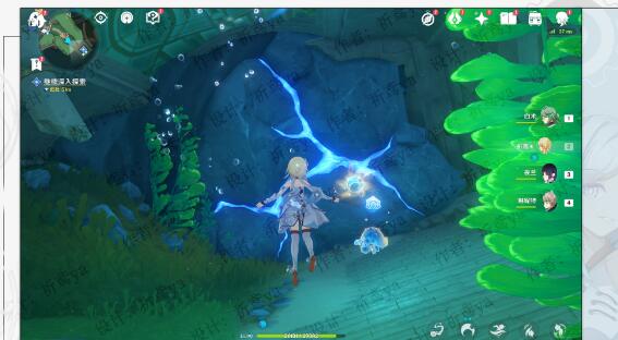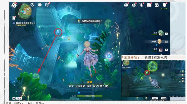 5,先吸收刀鳐的力量(左键),再释放水刃(E)就能斩断水草(对准绿色发光点)